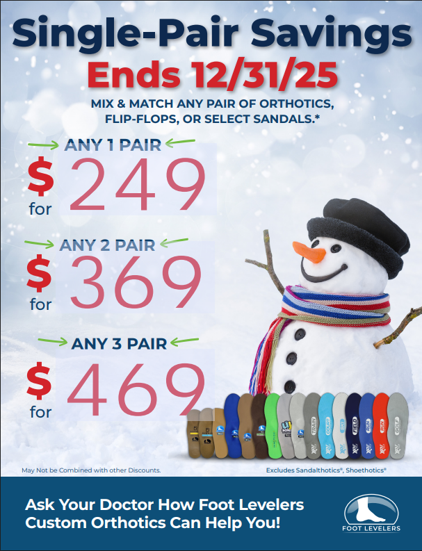 Come by our office for your free scan and learn more about Foot Levelers orthotics and how they can help you find lasting relief!